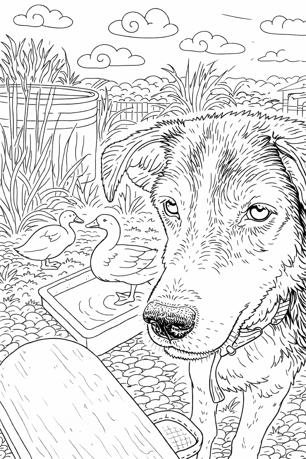 As part of this journey, I created a free coloring page inspired by one of my dogs and my ducks in the backyard — a little snapshot of the slower life I’m working toward.